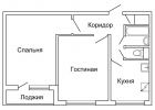 Квартира имеет продуманную планировку: жилая площадь составляет 38.5 кв.